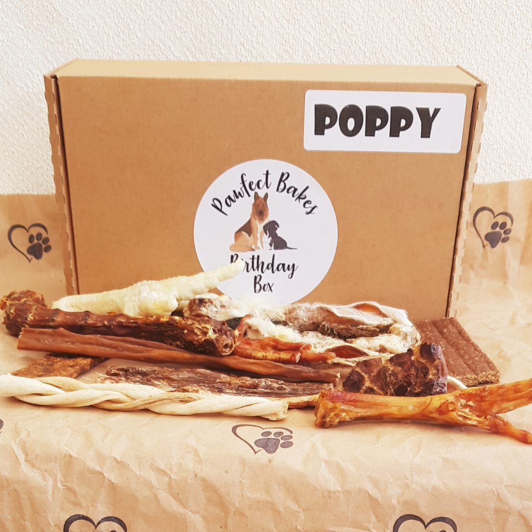 Our Birthday treat box contains 16 of the most popular chews and treats. A pawfect gift for your fur babies birthday.